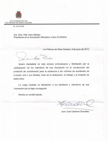 Agradecimiento de D.Juan José Cardona